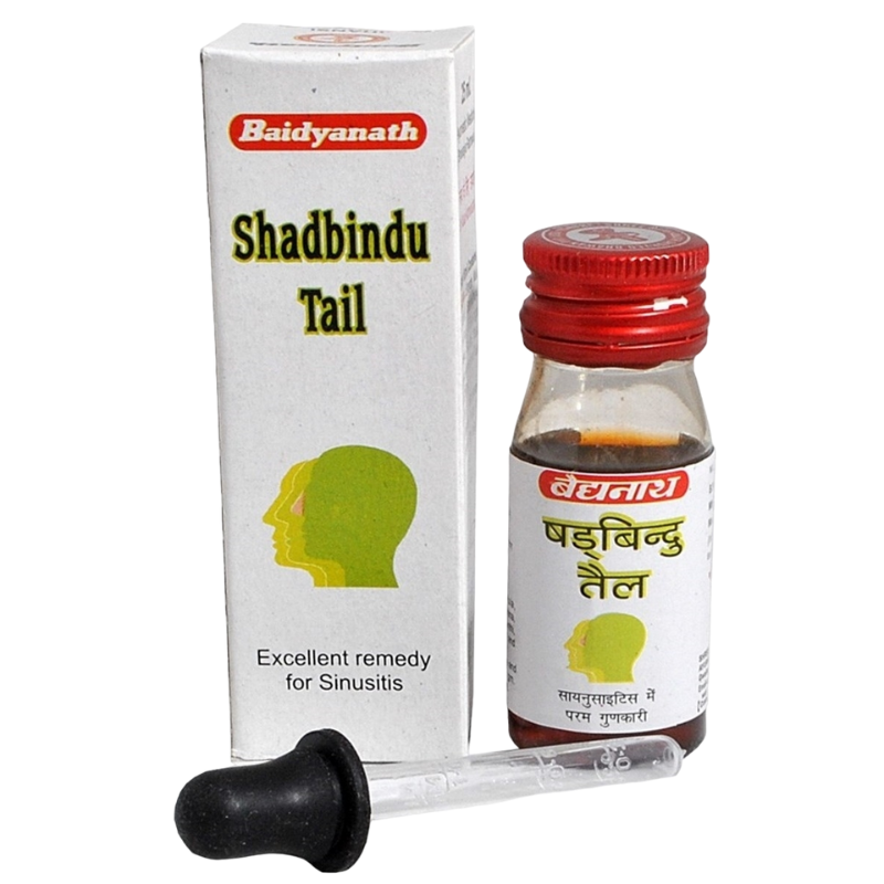 Шадбинду Тайл (Shadbindu Tail) Baidyanath – капли в нос на масляной основе. Это настоянные на кунжутном масле первого холодного отжима экстракты трав, поэтому препарат, будучи чисто растительной формулой, не имеет противопоказаний. Эта формула прекрасно очищает гайморовы пазухи, удаляя избыток слизи, снимает воспаления, отечность и головные боли, возникающие от избытка слизи в верхних дыхательных путях.